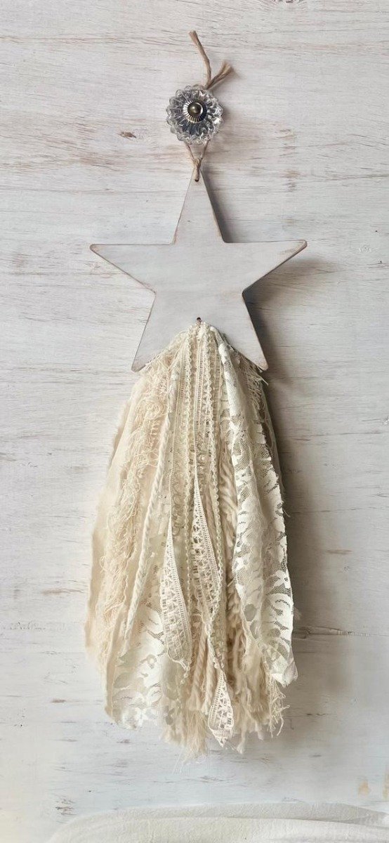 Colgante estrella en mdf pintado de blanco con estilo desgastado,