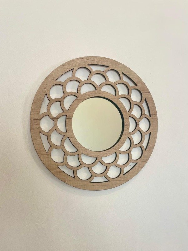 Los espejos son de MDF con terminacion teka artico, el diseño esta realizado con corte laser.