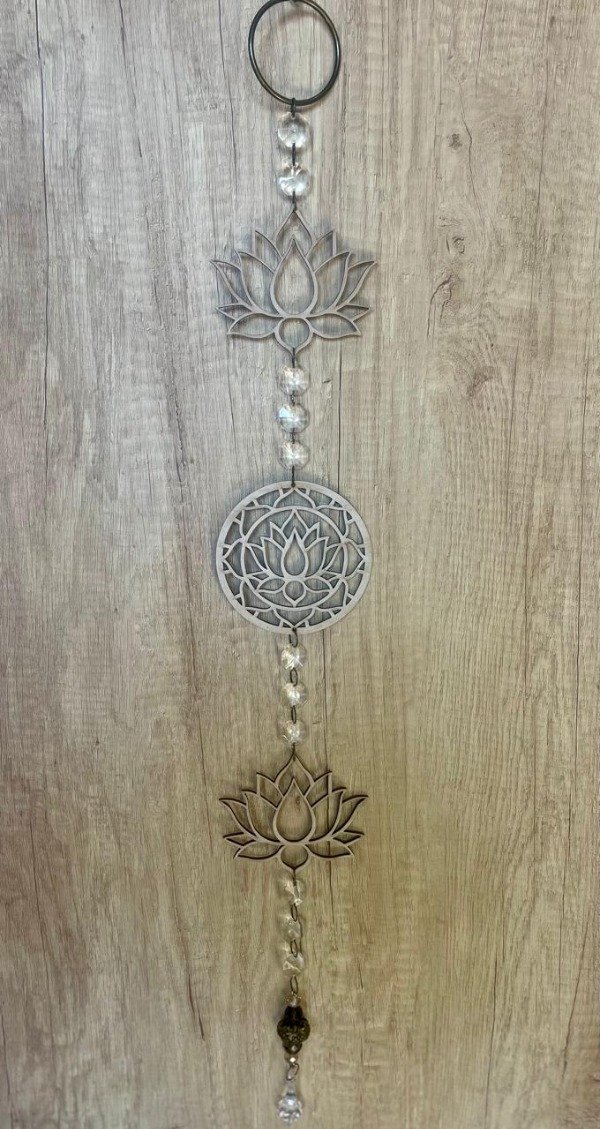 Tiras verticales con diferentes motivos realizados en mdf pintados en blanco desgastado, unidos por diferentes combinaciones de apliques